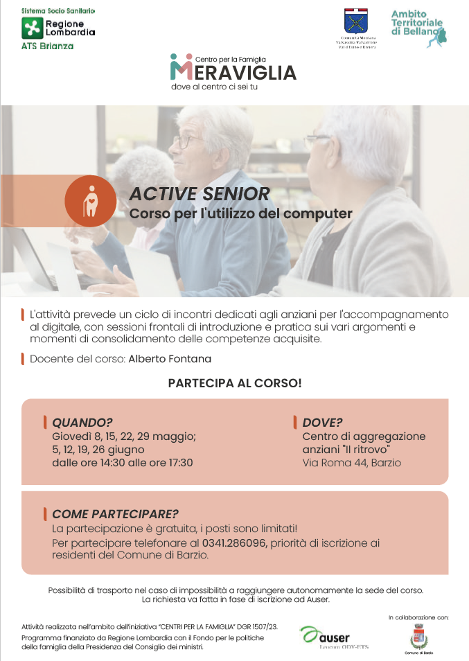 La partecipazione è gratuita, i posti sono limitati! Per partecipare telefonare al 0341286096, priorità di iscrizione ai residenti del Comune di Barzio.