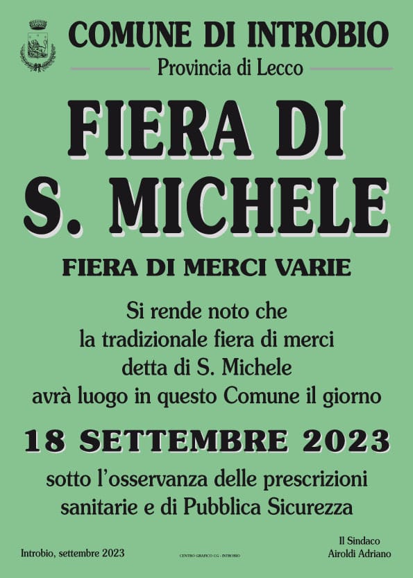 Si rende noto che Lunedì 18 settembre 2023 avrà luogo la tradizionale fiera di San Michele